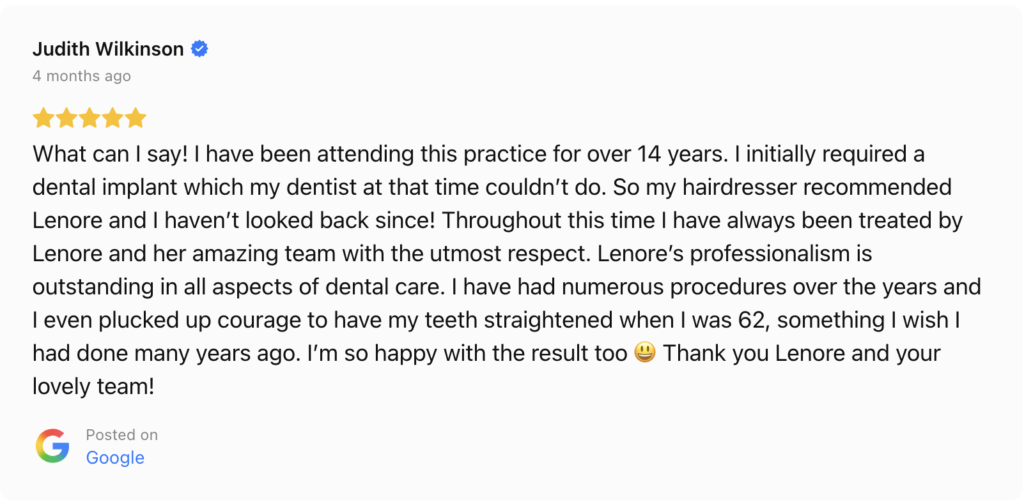 Our Principal Dentist, Dr Lenore Bronkhorst, is an internationally trained Cosmetic Dentist who has just celebrated 40 years in dentistry.