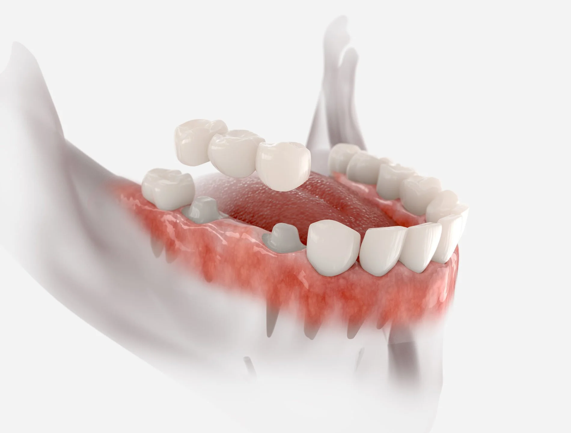 Adhesive bridges use very strong glue to bond a wing to the inner surface of the teeth next to the gap. These wings act as an anchor for the false bridge tooth. However, this technique is usually only suitable for small gaps and front teeth.