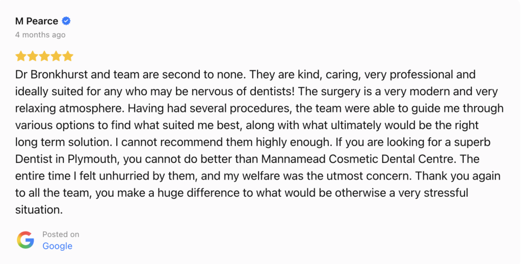 Our Mutley Plain clinic provides a deeply calming environment, and our Principal Dentist, Dr Lenore Bronkhorst, has a special interest in treating nervous patients. We can offer gentle dental sedation to ensure you are completely relaxed throughout your visit.