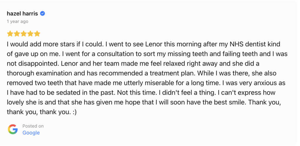 Prior to any treatment, all new patients are required to undergo a 1-hour comprehensive examination (£150), during which we will assess your oral health, discuss your sedation options, and provide a fully customised treatment plan with precise costs.