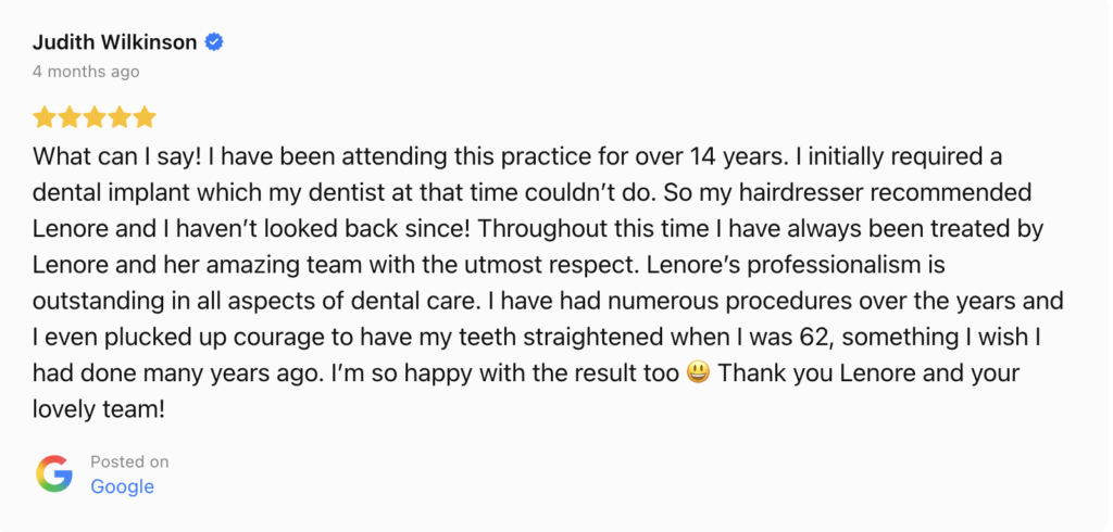 Our Principal Dentist, Dr Lenore Bronkhorst, is an internationally trained Cosmetic Dentist who has just celebrated 40 years in dentistry.